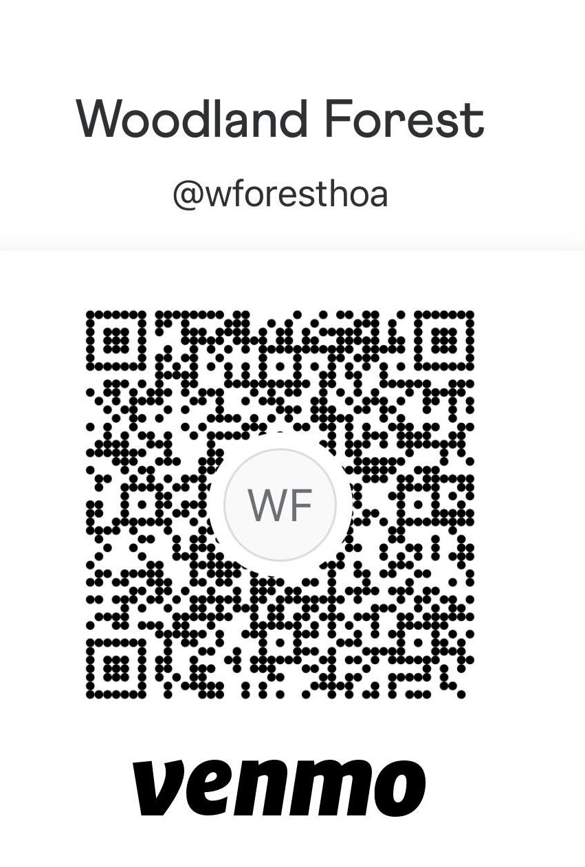 Venmo payments may be utilized using this link: https://venmo.com/u/wforesthoa, or scanning the QR code below. (You must have a Venmo account to utilize this form of payment.) Please put your home address in the memo if sending HOA due payment via Venmo. Scan the QR code below to open up our Venmo account.